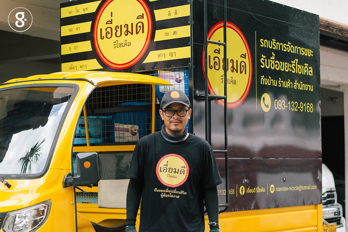 เมื่อศึกษาข้อมูลอย่างรอบคอบ ทำให้รู้ไปอีกว่า แม้จะมีซาเล้งหรือร้านรับซื้อของเก่าอยู่จริง แต่ก็ยังไม่สอดคล้องกับพฤติกรรมผู้บริโภค เขาจึงออกแบบธุรกิจการจัดการขยะขึ้นมาใหม่ด้วยการสร้างแบรนด์ให้มีความน่าเชื่อถือและนำเสนอความเป็นมืออาชีพในนาม เอี่ยมดีรีไซเคิล–มอเตอร์ไซค์พร้อมพื้นที่เก็บของด้านหลังที่ให้บริการรับซื้อขยะฟรีถึงบ้าน ร้านค้า และสำนักงานในจังหวัดเชียงใหม่ โดยแบ่งรายได้จำนวน 30 เปอร์เซ็นต์ ไว้ทำประโยชน์ให้แก่คนพิการ เด็กยากไร้ และคนด้อยโอกาสต่างๆ